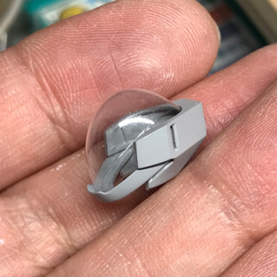 で、スーツは何とか形になったんだけど、やはりヘルメットが無いとパイロットっぽく無いし、自分のスキル的にもあまり進歩がないなあと感じたので、奮起してヘルメット製作に挑戦! 透明バイザーも初挑戦のバキュームフォームで製作。最初は透明プラ板で何度も試したけど全然できなくて、塩ビ板でようやく完成、、、。なかなかいい感じに出来て、次の「まそたん」を作るモチベーションとなってくれました。